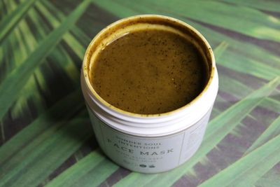 Sea Moss Gel, Honey, Aloe Vera Gel, Colloidal Oatmeal, Coffee, Turmeric, Cinnamon, Rosehip Oil, Essential Oil mix; Lavender, Tea Tree, Rosemary.